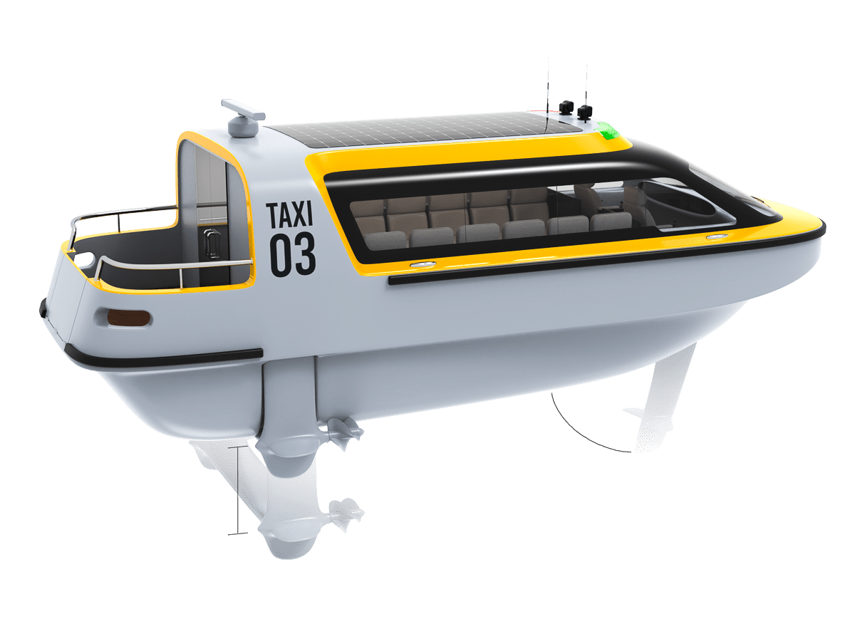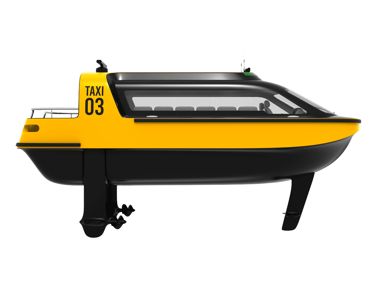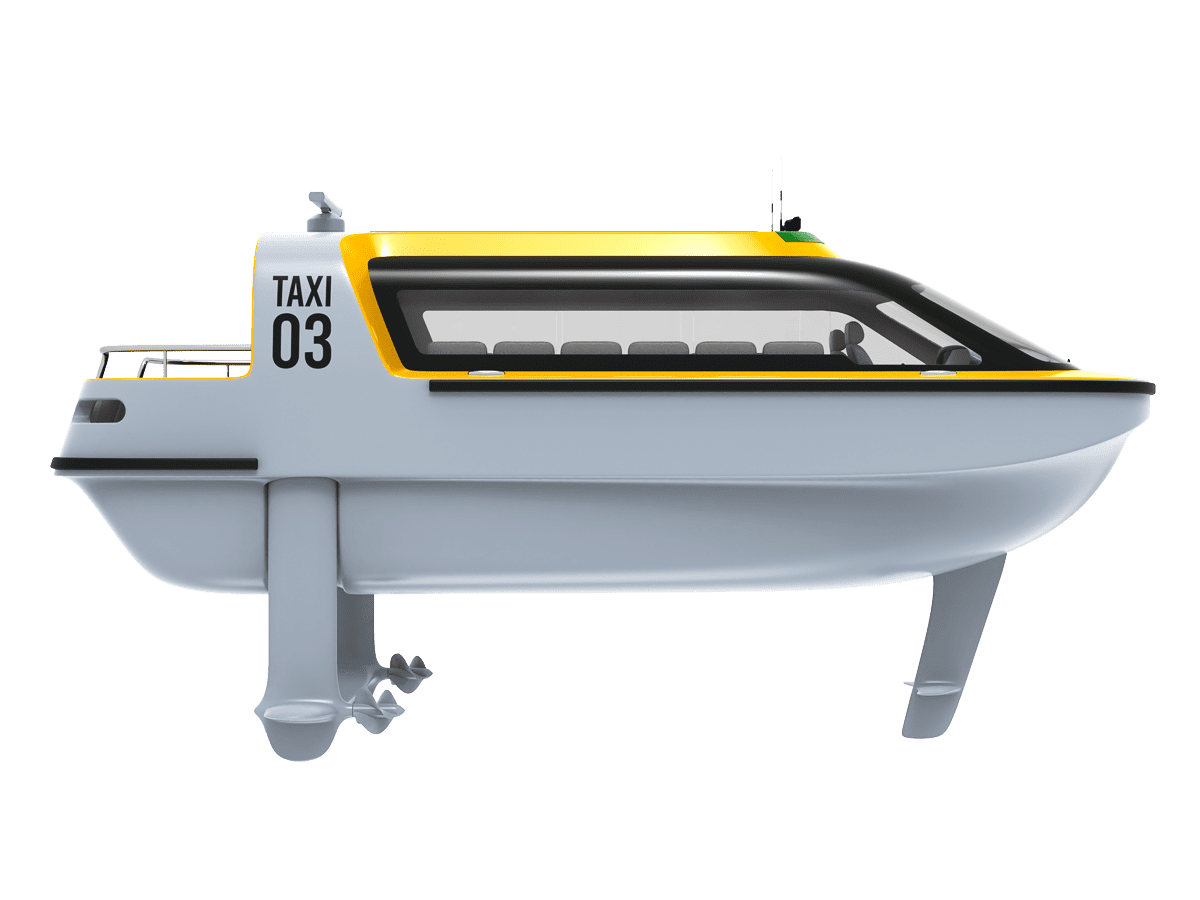 Concept development and visualizations of a fully EV powered foiling watercraft for The Water Taxi Company.