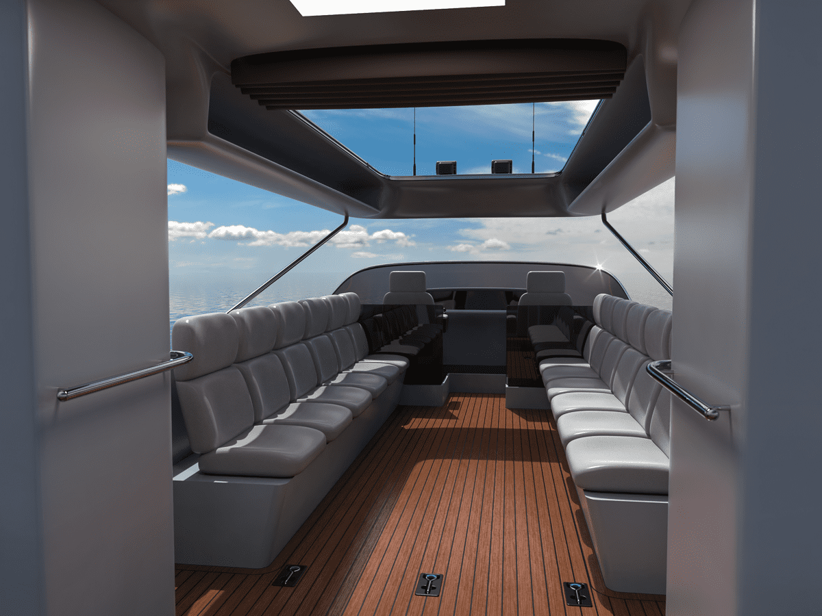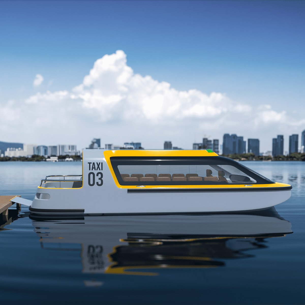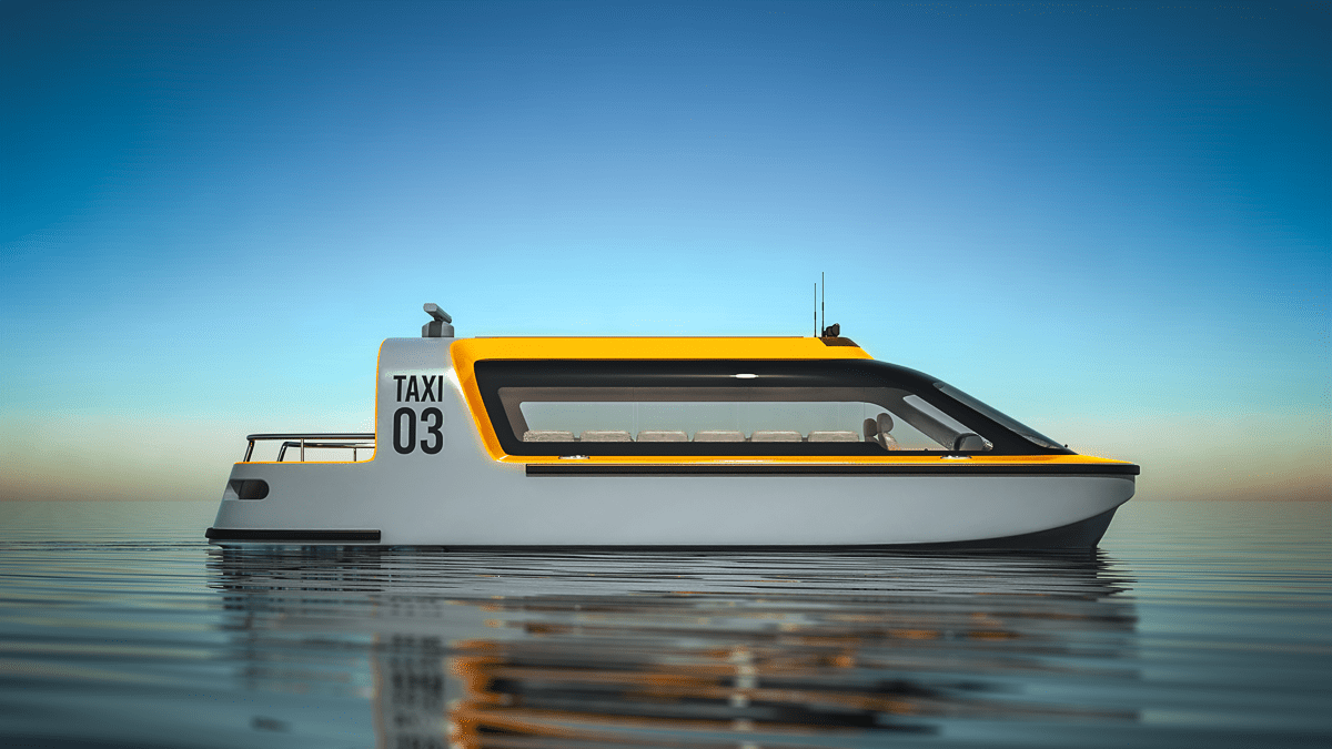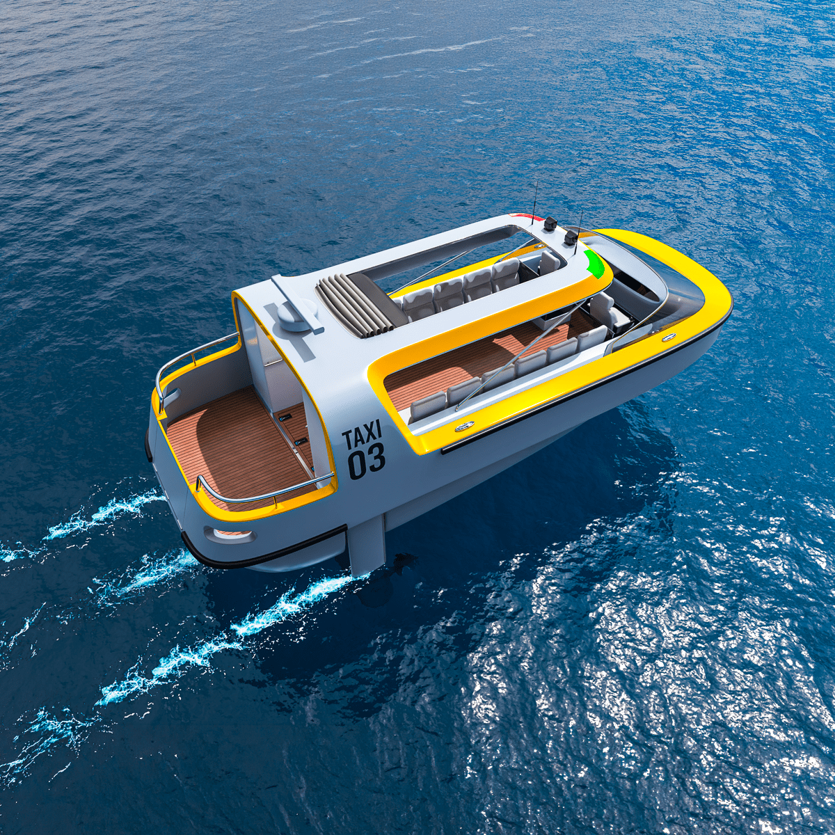 Concept development and visualizations of a fully EV powered foiling watercraft for The Water Taxi Company.